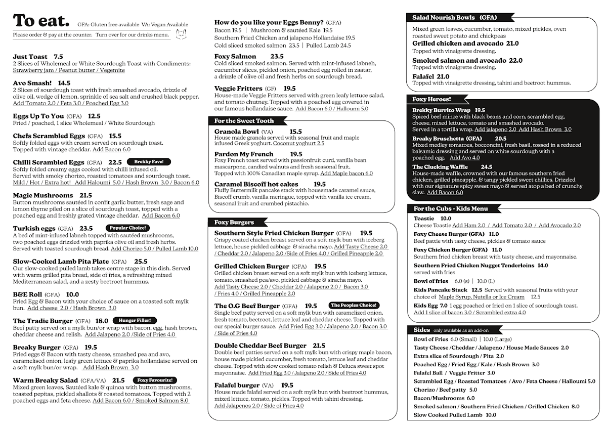 Welcome to Four Little Foxes, a charming cafe nestled on Amiens Ave in Milperra, offering a delightful menu that captures the essence of comforting and innovative food. The standout dishes include the Brekky Burrito Wrap and Breaky Bruschetta, perfect for kickstarting your day. Indulge in the crispy The Clucking Waffle, a crowd favorite that combines sweet and savory in every bite.