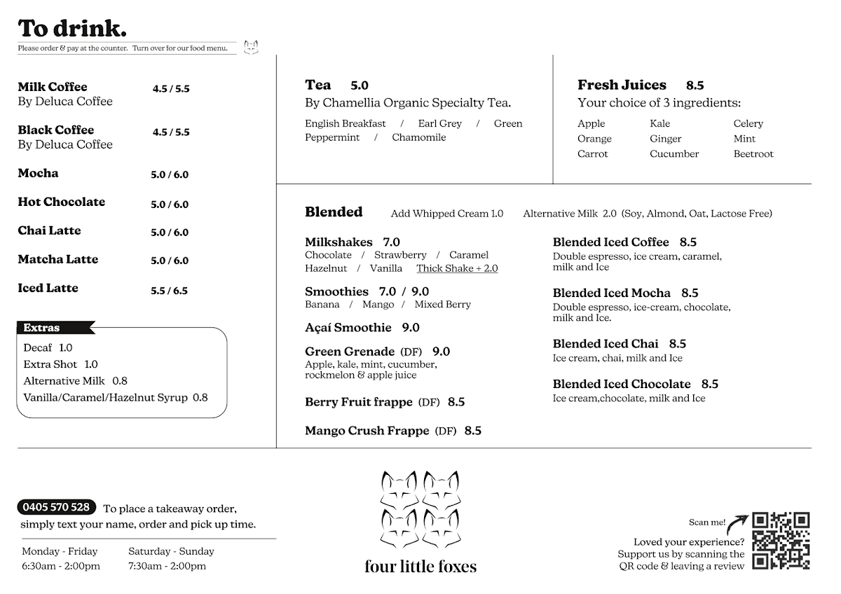 Join fellow foodies who rave about the quality ingredients and friendly service, making each visit memorable. Whether you're in for a quick bite or a leisurely brunch, Four Little Foxes is a must-visit culinary gem!